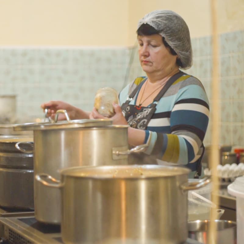 Unsere Mission – den Menschen in Kharkiv zu helfen, indem wir ihnen das Nötigste zum Überleben zu geben: einen sicheren Ort und eine warme Mahlzeit.